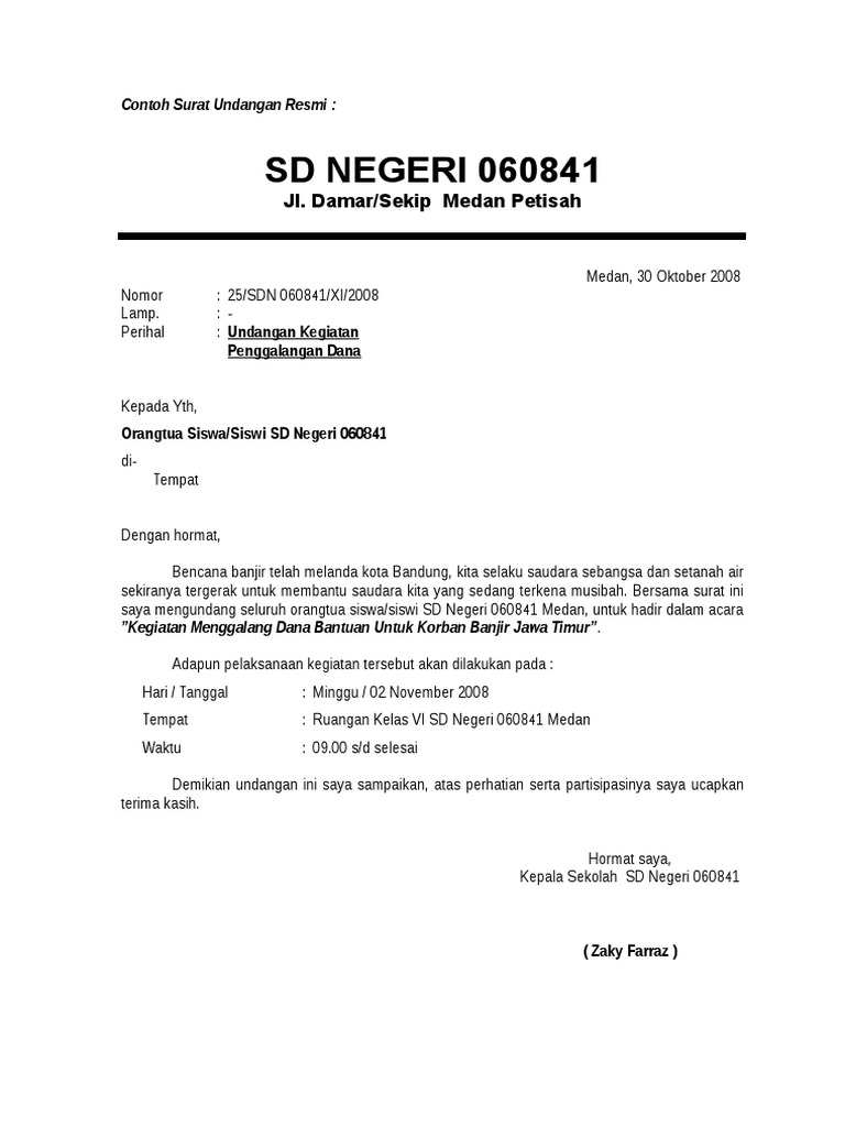 Sebagai sebuah organisasi, kerapkali osis melaksanakan bermacam aktivitas yang bertujuan untuk mengundang osis dari sekolah lain untuk menghadiri kegiatan tersebut. 29 contoh surat undangan resmi tidak resmi rapat pernikahan. Contoh surat resmi untuk instansi pemerintahan. Mungkin saat ini kamu sedang ditugaskan oleh perusahaan atau organisasi membuat surat undangan resmi untuk berbagai kegiatan. Pemahaman menulis surat undangan resmi perlu dilakukan agar surat yang dibuat bisa sesuai dengan tata cara yang benar. Surat resmi terdiri dari kop surat, nomor, lampiran, perihal, serta adanya. Dan untuk memastikan kehadiran setiap orang, maka berbagai pihak seringkali menggunakan surat undangan resmi. Surat undangan festival budaya dan tik desa panjalu 2013. Contoh proposal proposal kegiatan dibuat tentunya dengan tujuan untuk mensukseskan suatu kegiatan baik itu kegiatan organisasi masyarakat organisasi sekolah atau. Berikut 99.co indonesia hadirkan struktur dan contohnya agar bisa kamu jadikan referensi! Banyak dari kegiatan yang kita ikuti merupakan kegiatan yang bersifat resmi. Beberapa contoh surat undangan resmi sebagai berikut ; Jika kita terjemahkan bebas surat undangan adalah ajakan, pemberitahuan, permintaan atau permohonan satu pihak kepada pihak yang lain untuk menghadiri suatu yang telah direncanakan oleh si pengirim surat.